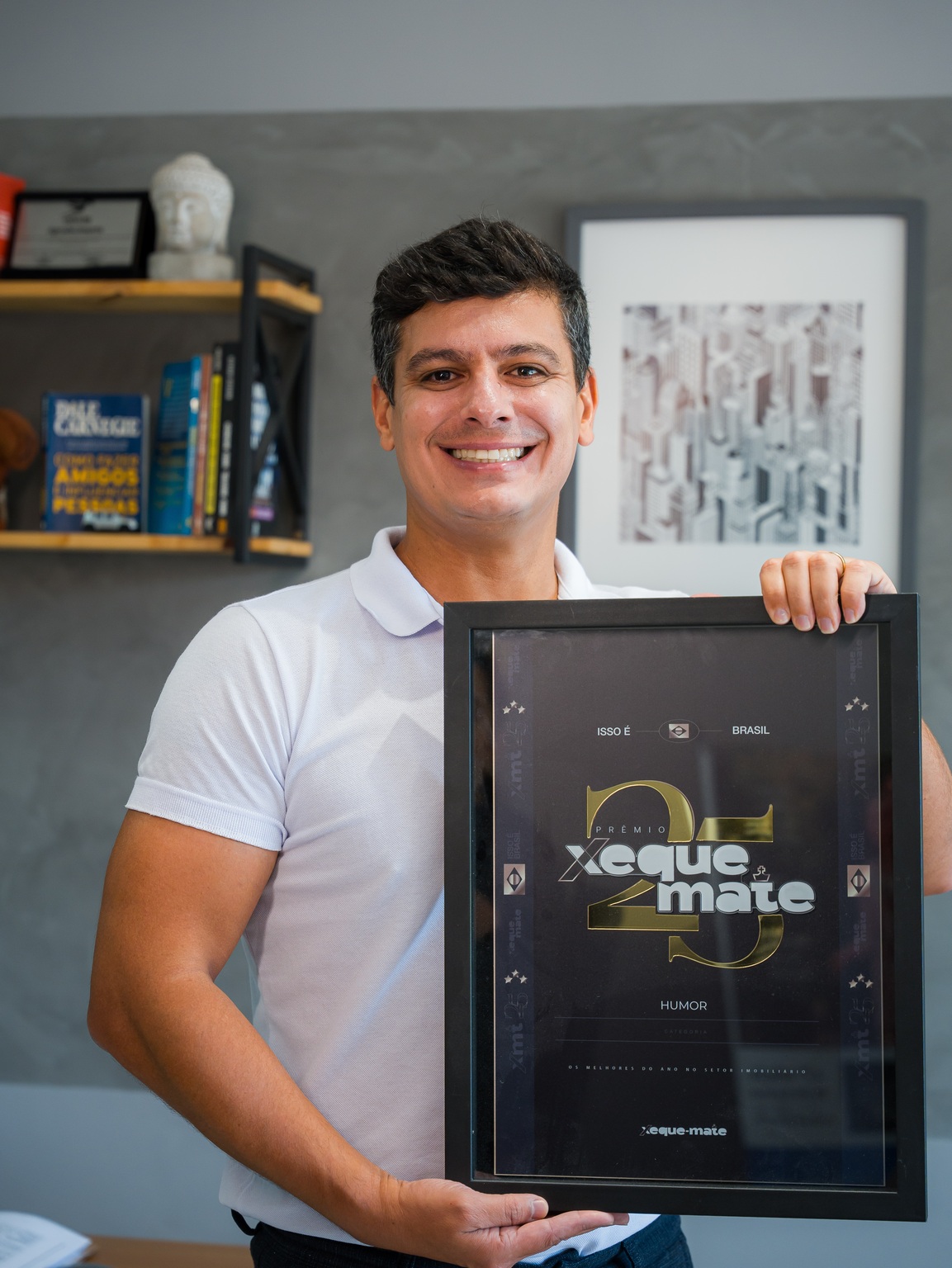 O trabalho ganhou ainda mais visibilidade com a conquista do Prêmio Xeque-Mate 2026, na categoria Humor. A premiação, realizada em Alphaville (SP), é considerada o “Oscar” do mercado imobiliário e reconhece os principais profissionais do setor em todo o Brasil.