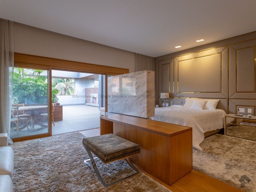 Com 1.800 m² de área total e 961 m² de área construída, o imóvel impressiona já na entrada, onde o destaque é o amplo espaço gourmet, um dos ambientes mais valorizados da casa, pensado para receber convidados com conforto e integração aos demais espaços.