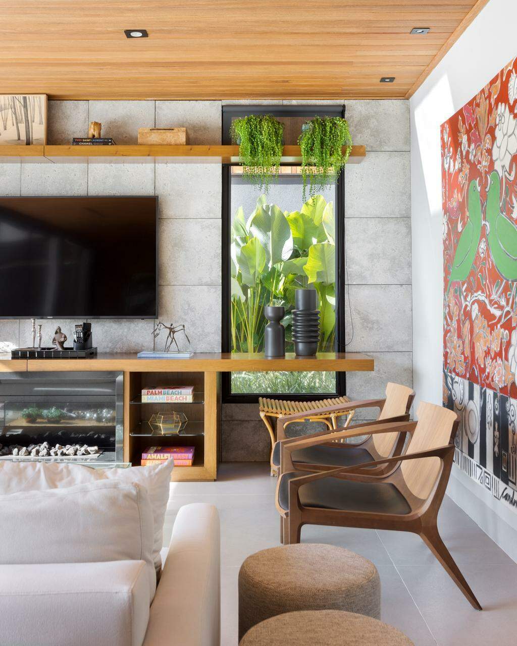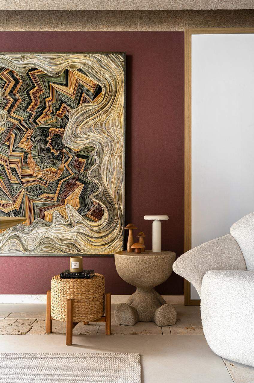 “Prefiro trabalhar com cores em objetos que podem ser facilmente substituídos, como almofadas, quadros ou itens decorativos. Já a base do ambiente deve ser mais neutra, para valorizar materiais naturais e manter a harmonia”, explica.
