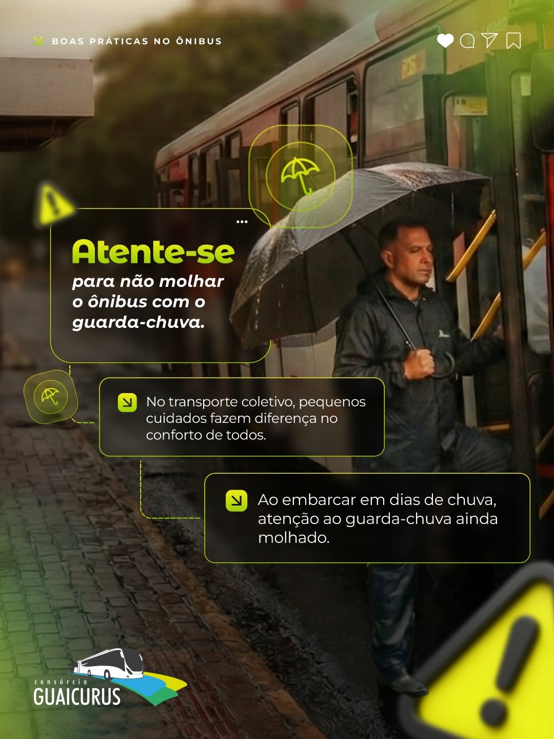Guarda-chuva educado – O Consórcio Guaicurus resolveu investir na pedagogia da chuva. Em postagem nas redes, ensinou como segurar o guarda-chuva molhado para não respingar no vizinho, não molhar banco, barra, corredor e, de quebra, evitar escorregões. Tudo muito correto, gentil e civilizado. Só faltou combinar com São Pedro e com a infraestrutura.