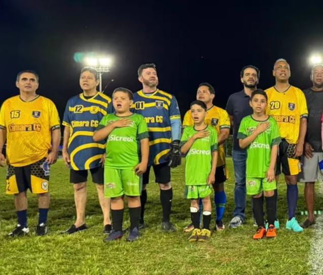 Adversários – No time dos vereadores, embora não houvesse nenhum profissional, a presença de parlamentares em campo superou a da equipe dos deputados. Na foto dos representantes da Câmara Municipal apareceram Papy, Fábio Rocha, Júnior Coringa, Flávio Cabo Almi, Beto Avelar, Maicon Nogueira, Clodoilson Pires, Leinha, Wilson Lands e Herculano Borges. A curiosidade da imagem ficou por conta do presidente do Legislativo municipal, que entrou em campo acompanhado de uma criança quase do seu tamanho.