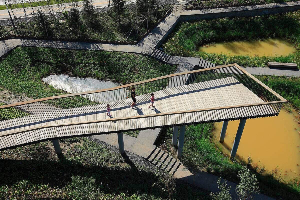 A ideia saiu do papel e virou política pública: em 2013, o governo chinês adotou o programa nacional de cidades-esponja, priorizando infraestruturas naturais de grande escala, como zonas úmidas, vias verdes e parques.