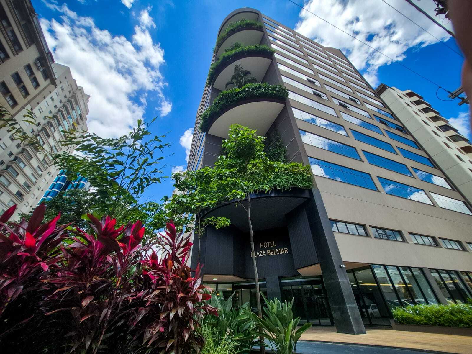 Depois de 11 anos de construção e inspirado na tendência de edifícios sustentáveis de São Paulo, enfim, o prédio em frente à Praça Belmar Fidalgo já tem mês definido para inauguração. Com 12 andares, 192 quartos e floreiras gigantes na área externa, o Hotel Plaza Belmar deve abrir em abril de 2026. Para quem está curioso para saber se dentro também tem tantas plantas quanto do lado de fora, o Lado B deu uma olhadinha para contar isso e mais alguns detalhes da obra.