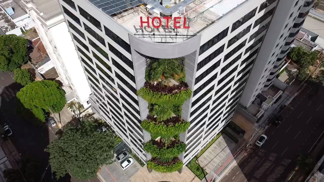 O Hotel Plaza Belmar, localizado em frente à Praça Belmar Fidalgo em Campo Grande, será inaugurado em abril de 2026 após 11 anos de construção. O empreendimento de 12 andares e 192 quartos se destaca por suas floreiras gigantes na área externa, inspiradas na tendência de edifícios sustentáveis de São Paulo. Com investimento superior a R$ 100 mil apenas no sistema de irrigação das plantas, o hotel oferecerá quartos a partir de R$ 350, contará com quatro salas de reuniões temáticas e será o segundo maior da cidade. O projeto, que enfrentou a falência da construtora inicial, foi concluído por uma associação de investidores que assumiu a gestão do empreendimento.