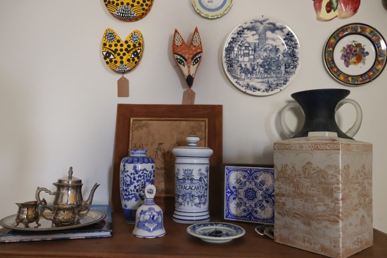 O endereço virou abrigo para porcelanas, cerâmicas, faianças, cristais, esculturas em madeira, obras de arte e objetos que carregam marcas do tempo. Algumas peças chegam com procedência conhecida, outras nem sempre revelam de onde vieram. Ainda assim, encontram lugar ali por um motivo simples: chamam Ale de algum jeito.