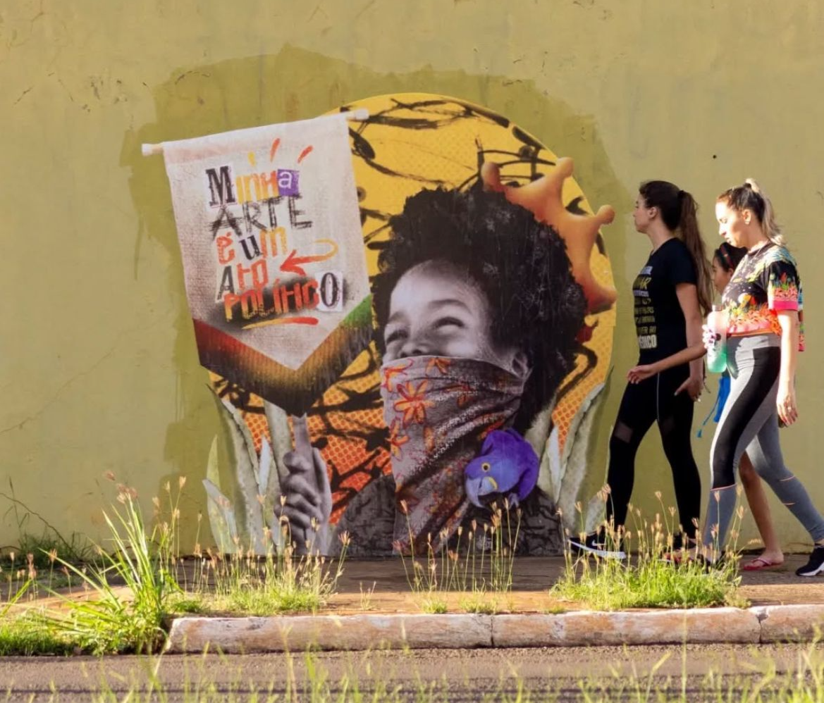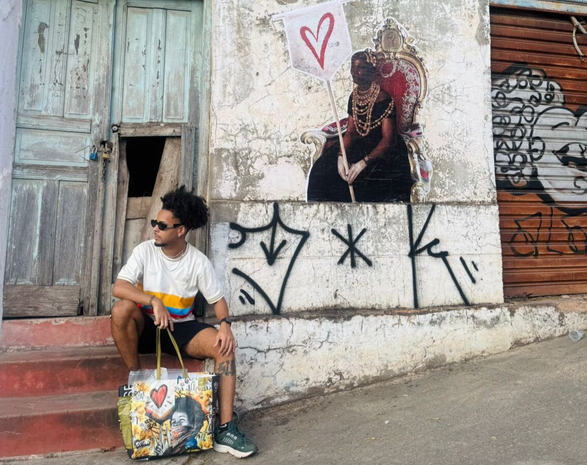 A arte com DNA sul-mato-grossense apareceu no capítulo desta quinta-feira (22) da novela Três Graças, da Rede Globo. O desenho, estampado em uma sacola, faz parte da série “As Crianças Pretas”, do artista visual Leo Mareco, que vive em Campo Grande e construiu sua trajetória a partir da arte urbana.