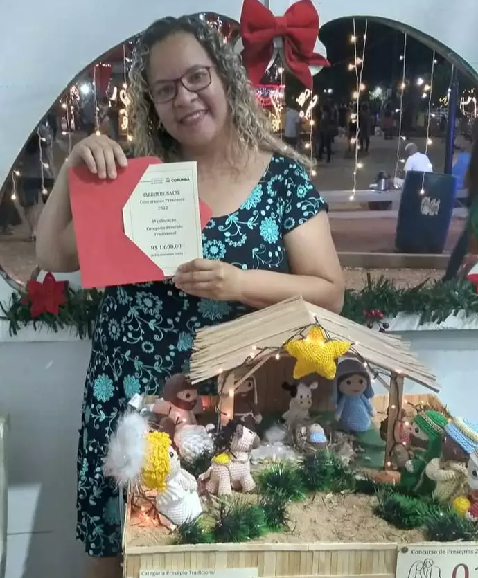 A artesã Nanci Dias do Nascimento, de 46 anos, conquistou pela terceira vez o concurso de presépios da Prefeitura de Corumbá com uma criação inspirada no filme "Divertidamente", da Pixar. O presépio foi confeccionado utilizando a técnica do amigurumi, similar ao crochê tradicional. O talento para o crochê é uma tradição que atravessa quatro gerações na família de Nanci, tendo início com sua avó, Felicidade Morengia. Mesmo sendo servidora pública, a artesã mantém viva a arte do crochê, que já foi sua principal fonte de renda. O presépio premiado, produzido em dois meses, apresenta as dez emoções do filme, todas confeccionadas com linha fina.