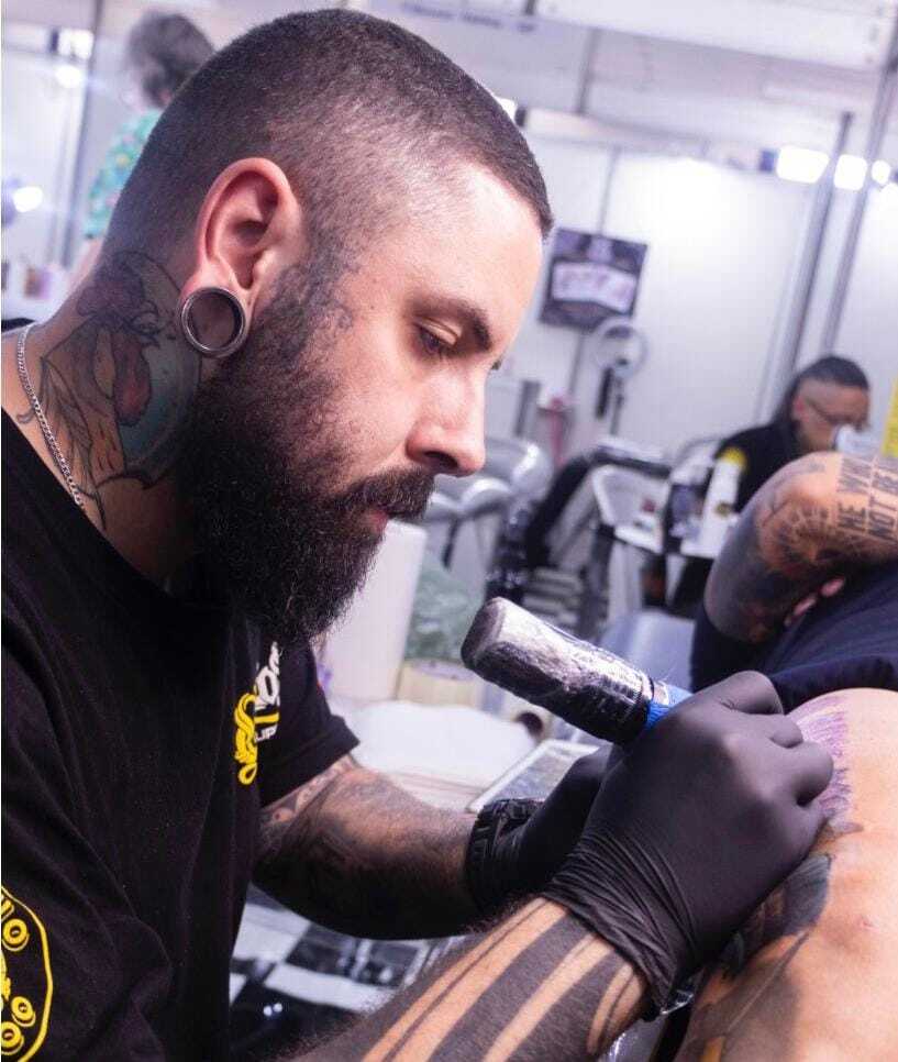 Tatuador desde 2014, Gabriel entrou na área depois de comprar um kit de trabalho e começar praticando na mãe, depois em amigos próximos. A partir daí, tatuar virou profissão. Hoje, ele se destaca no estilo realista, tanto em preto e branco quanto em cores.