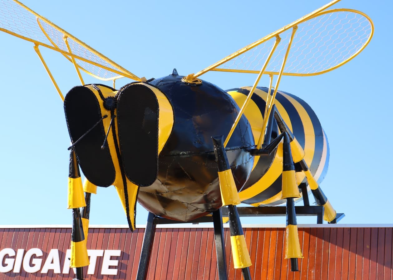 Abelha de uma tonelada e 6 metros é mascote no telhado de loja