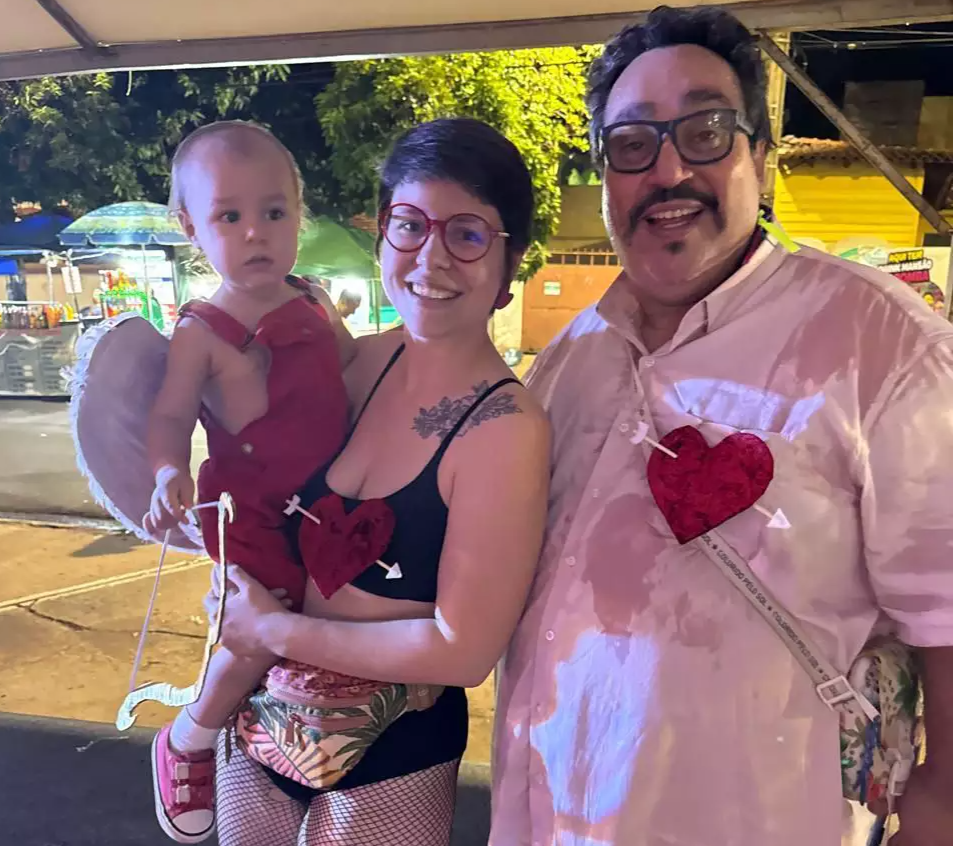 O pequeno Antônio, com menos de 2 anos, já é veterano no Carnaval de Campo Grande. Filho da atriz Helena Soares e do diretor de teatro Fernando Lopes, ele participa da festa desde antes de nascer, quando sua mãe desfilou fantasiada de abacate, fazendo dele o "caroço". A tradição carnavalesca vem de ambos os lados da família. Helena é filha dos fundadores do Bloco Cordão Valu, pioneiros do Carnaval de rua da cidade, enquanto Fernando, carioca nascido durante o Carnaval, cresceu na cultura do samba do Rio de Janeiro. A família mantém o costume de usar fantasias temáticas e acredita na importância de perpetuar essa manifestação cultural através das gerações.