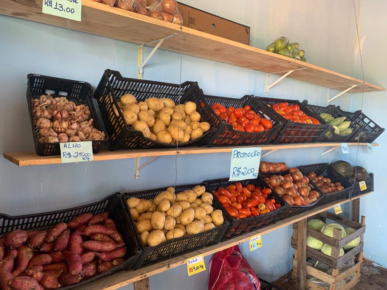Hoje, com pouco mais de um mês de funcionamento, o espaço ainda engatinha, mas já mostra sinais de que pode andar. Na banca, tem de tudo um pouco: banana, maçã, tomate, batata, além de doces, chicletes e até pipa para atrair a criançada que passa por ali.