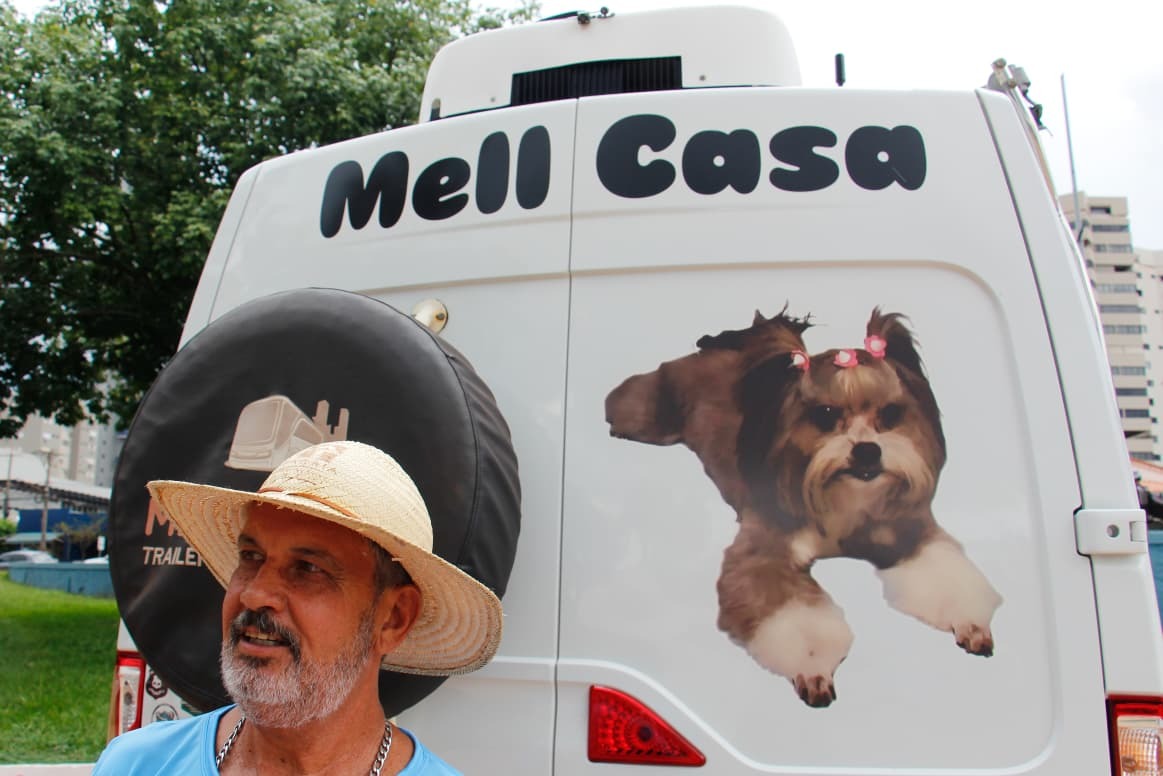 Pouco tempo depois, ele adquiriu uma van que passou por alguns ajustes até ficar pronta para a estrada. Na lataria, ganhou o nome “Mell Casa”, acompanhado da foto da cachorrinha. A cada parada, a imagem chama atenção e para o casal, é como se ela continuasse viajando junto.