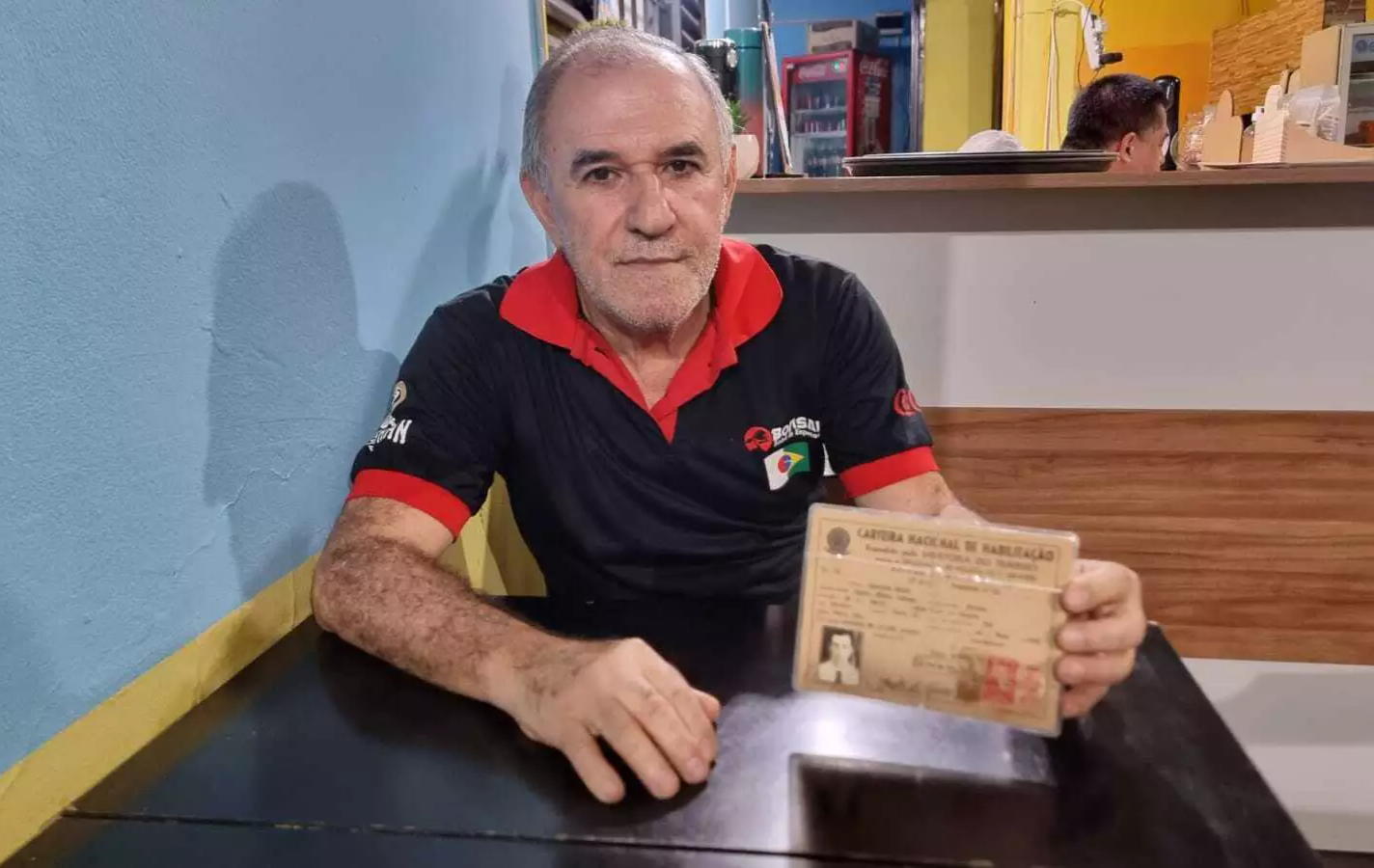 Celso guarda carteira de habilitação de charrete tirada pelo pai em 1942
