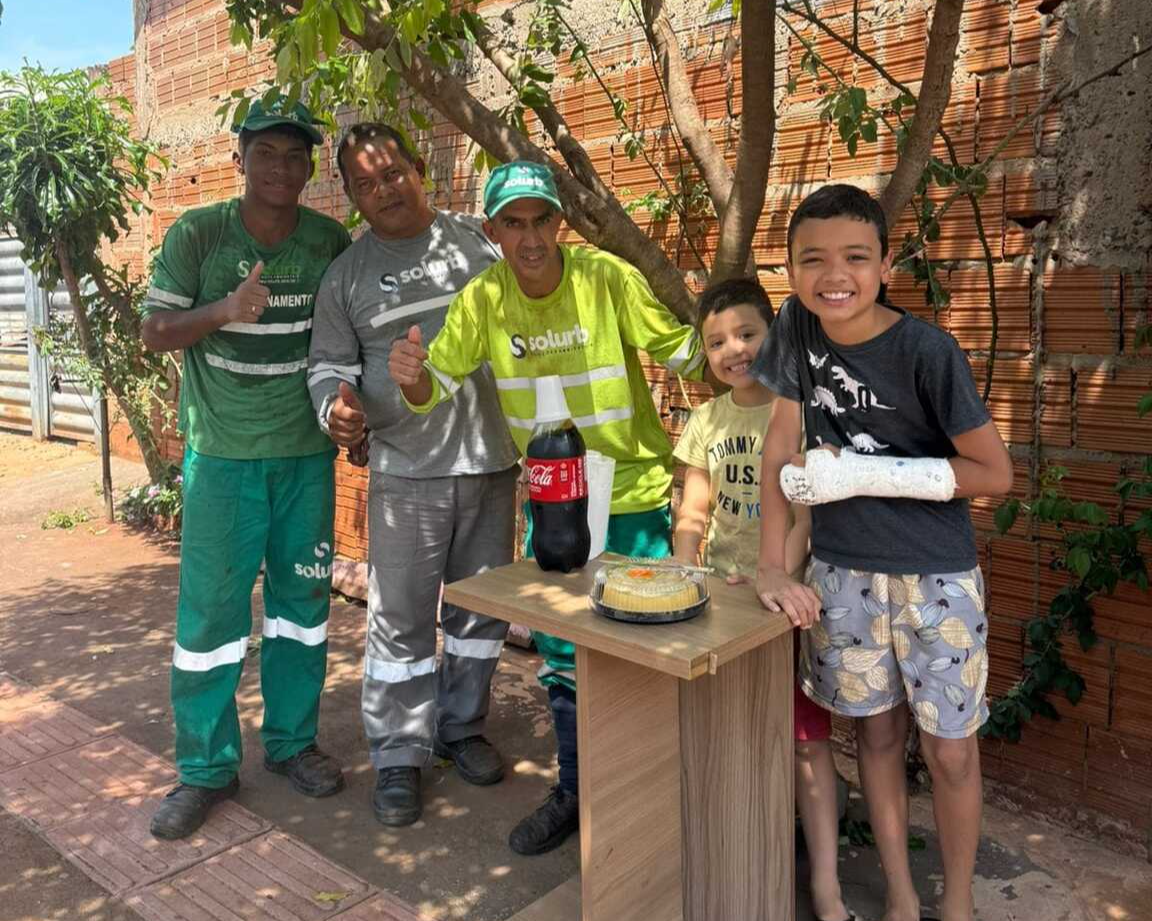 Em Campo Grande, um menino de 6 anos surpreendeu garis com um gesto de gratidão. Enzo Brito organizou uma pequena festa com bolo e refrigerante para os profissionais que trabalham diariamente na rua onde mora, no Bairro São Francisco. A iniciativa partiu do próprio Enzo, que sempre demonstrou carinho pelos coletores. Segundo seu pai, Luciano Chaves Vadora, o menino faz questão de cumprimentar os trabalhadores todos os dias. Após conversar com seu irmão Mateus, decidiu realizar a homenagem no último sábado (1º).