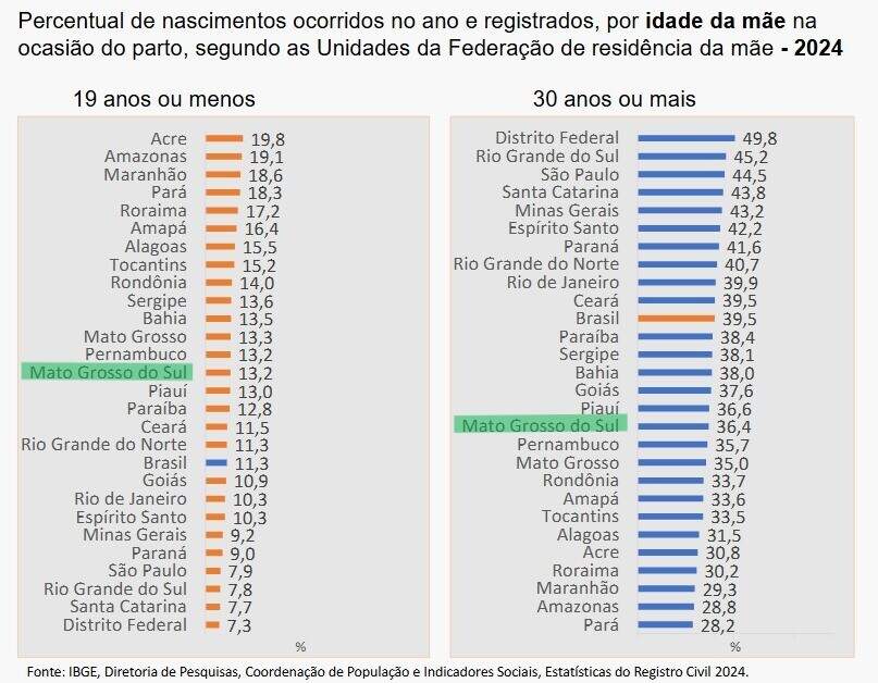 No extremo oposto, a maternidade precoce persiste. Em 2024, 231 meninas com menos de 15 anos tiveram filhos em Mato Grosso do Sul; em Campo Grande foram 51 casos. Ainda que os índices estejam abaixo dos picos históricos, seguem sendo um indicador sensível de vulnerabilidade social.