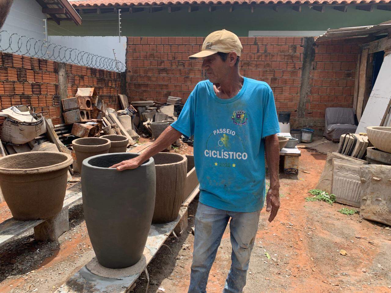 “É uma coisa simples de fazer, muita gente achou que eu não viveria bem fazendo isso. A matéria-prima não é cara, mas a mão de obra sim. Eu vendia os vasos de R$ 25 a R$ 500. Vendia de tudo. Sai muito bem todos os tamanhos, mas as pessoas buscavam mais vasos grandes para colocar fruta. Chegou a hora de parar. Estou quase fechado já.”