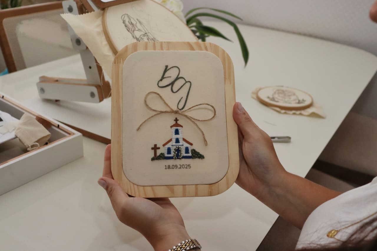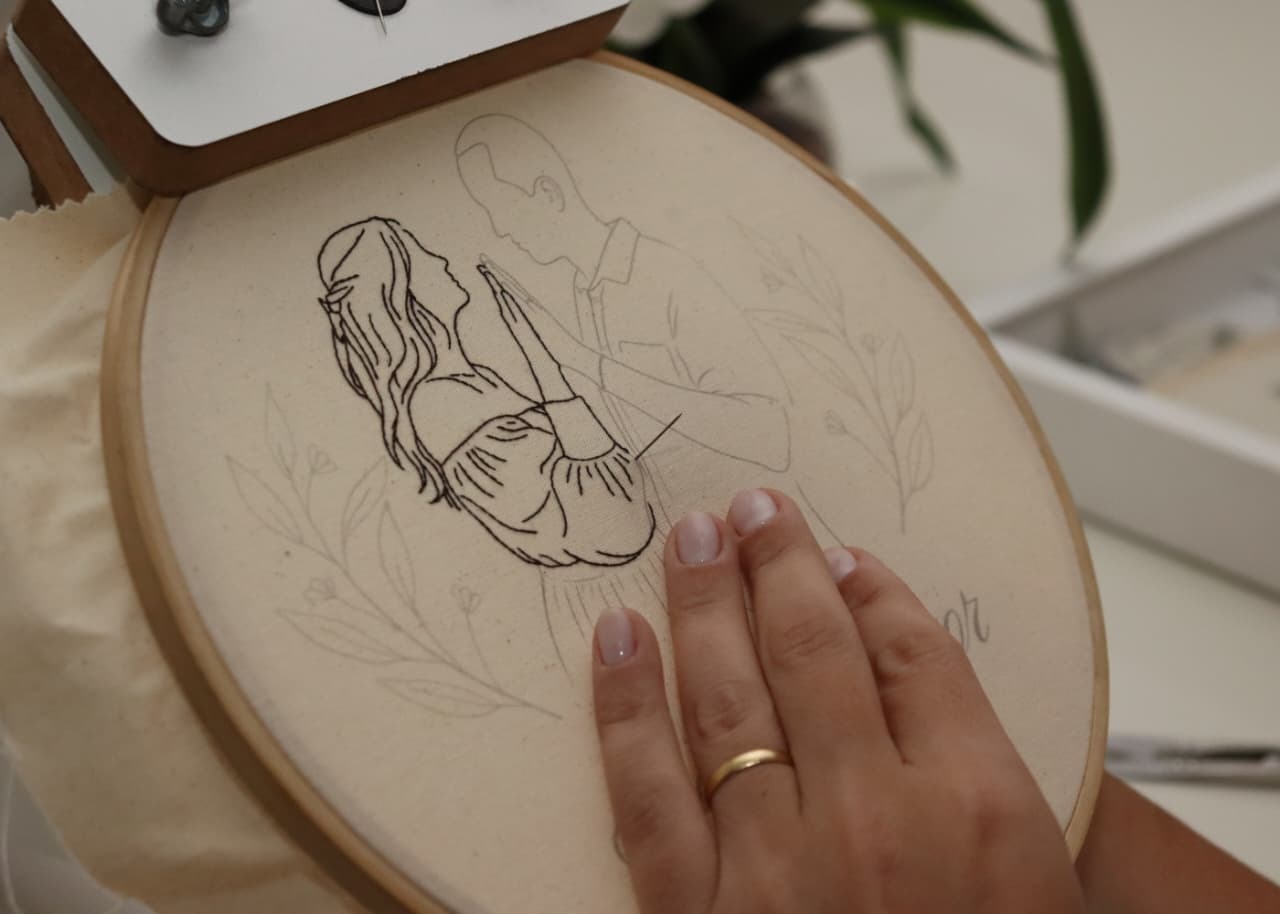 O bordado, inicialmente uma forma de terapia para a controladora de voo Maria Eduarda Sadler Barros, de 31 anos, transformou-se em fonte de renda extra. A atividade ganhou força durante as enchentes no Rio Grande do Sul, em 2024, quando ela enfrentava um período de ansiedade devido à transferência profissional para Campo Grande. O hobby evoluiu para um negócio após seu casamento, quando a cerimonialista, impressionada com seu trabalho, começou a indicá-la para outras noivas. Hoje, mesmo mantendo sua profissão principal, Maria Eduarda produz peças personalizadas com materiais premium, tendo o porta-alianças de seu próprio casamento como sua criação mais especial.