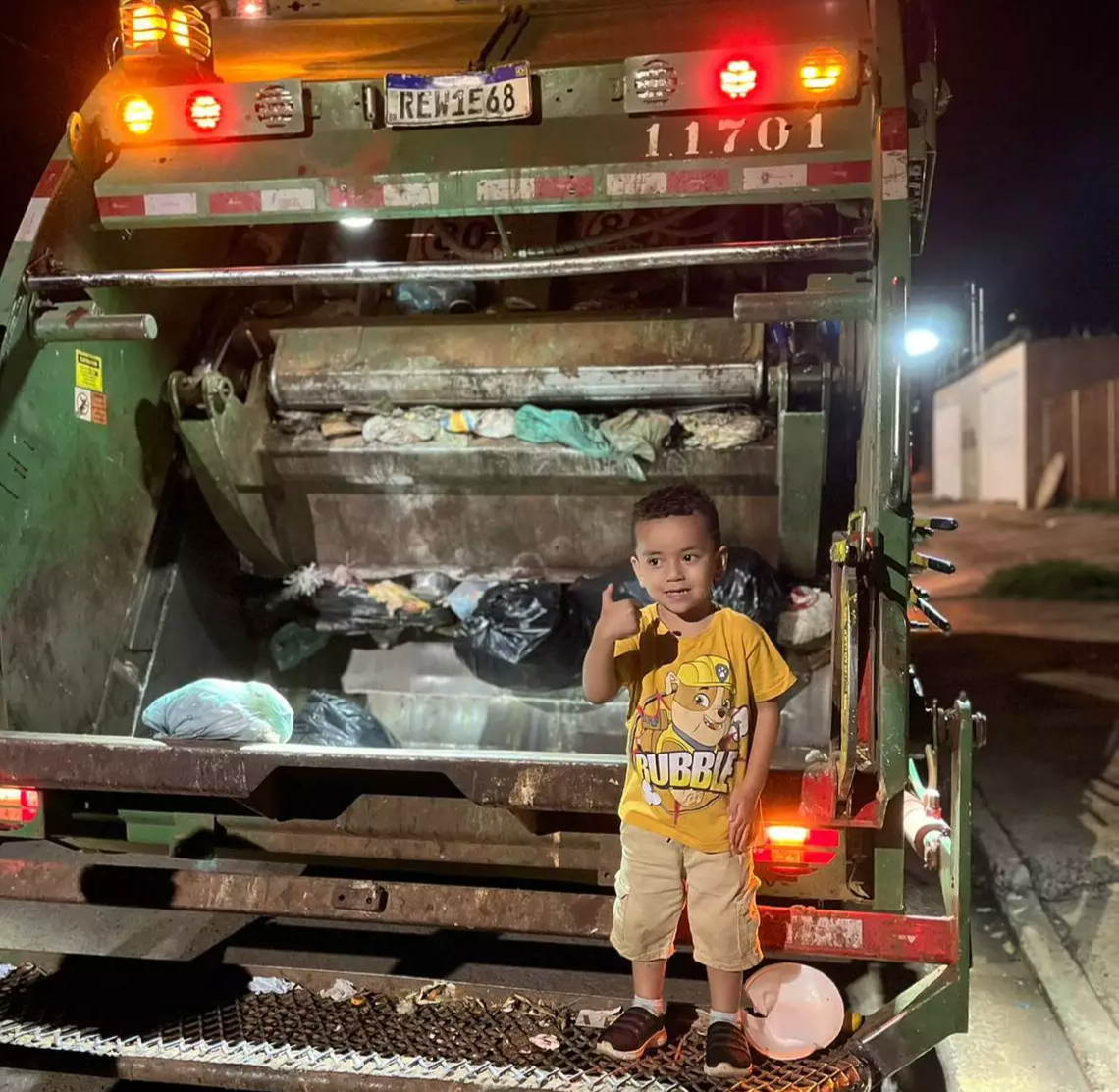 A família do pequeno Miguel, de 3 anos, viveu uma aventura noturna pelo bairro Coophavila em busca dos “amigos” do menino, os coletores de lixo. Apaixonado por caminhões desde bebê, Miguel não perde um dia de rota e chama os trabalhadores da coleta pelo nome carinhoso de “meus amigos”. No aniversário de 3 anos, tudo que ele queria era comemorar ao lado deles.