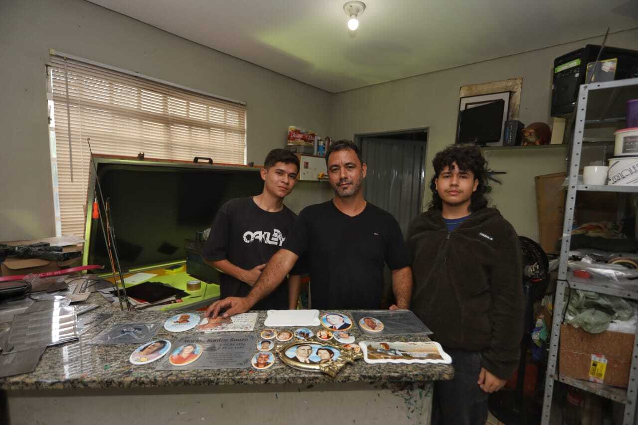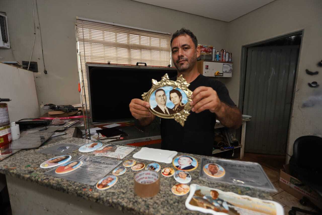 Jovelino de Paiva Neto, de 45 anos, faz o serviço que ninguém deseja ter que procurar: placas de túmulos. Há 14 anos, o goiano escolheu Campo Grande como lar e transformou saudade em sustento. Foi com inox e homenagens em porcelana que ele encontrou um jeito de ter o que ele não conseguiu na pequena cidade de Goiás: uma placa para deixar na lápide do avô.