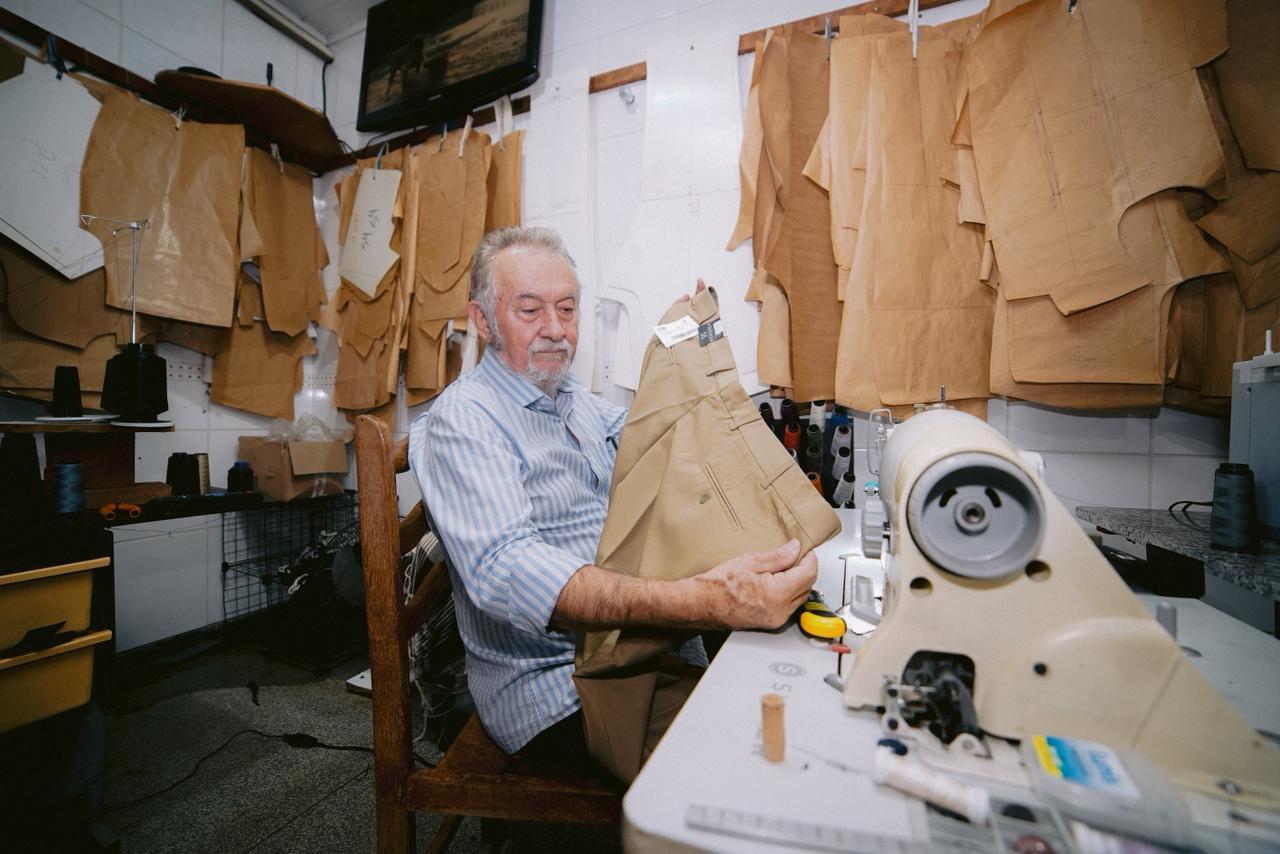 Há 60 anos, a alfaiataria que vestiu gerações segue nas mãos experientes de Nilton dos Reis Borges, de 78 anos. Em um pequeno espaço na loja da família, ele mantém viva a tradição da peça sob medida, feita com técnica e precisão milimétrica.