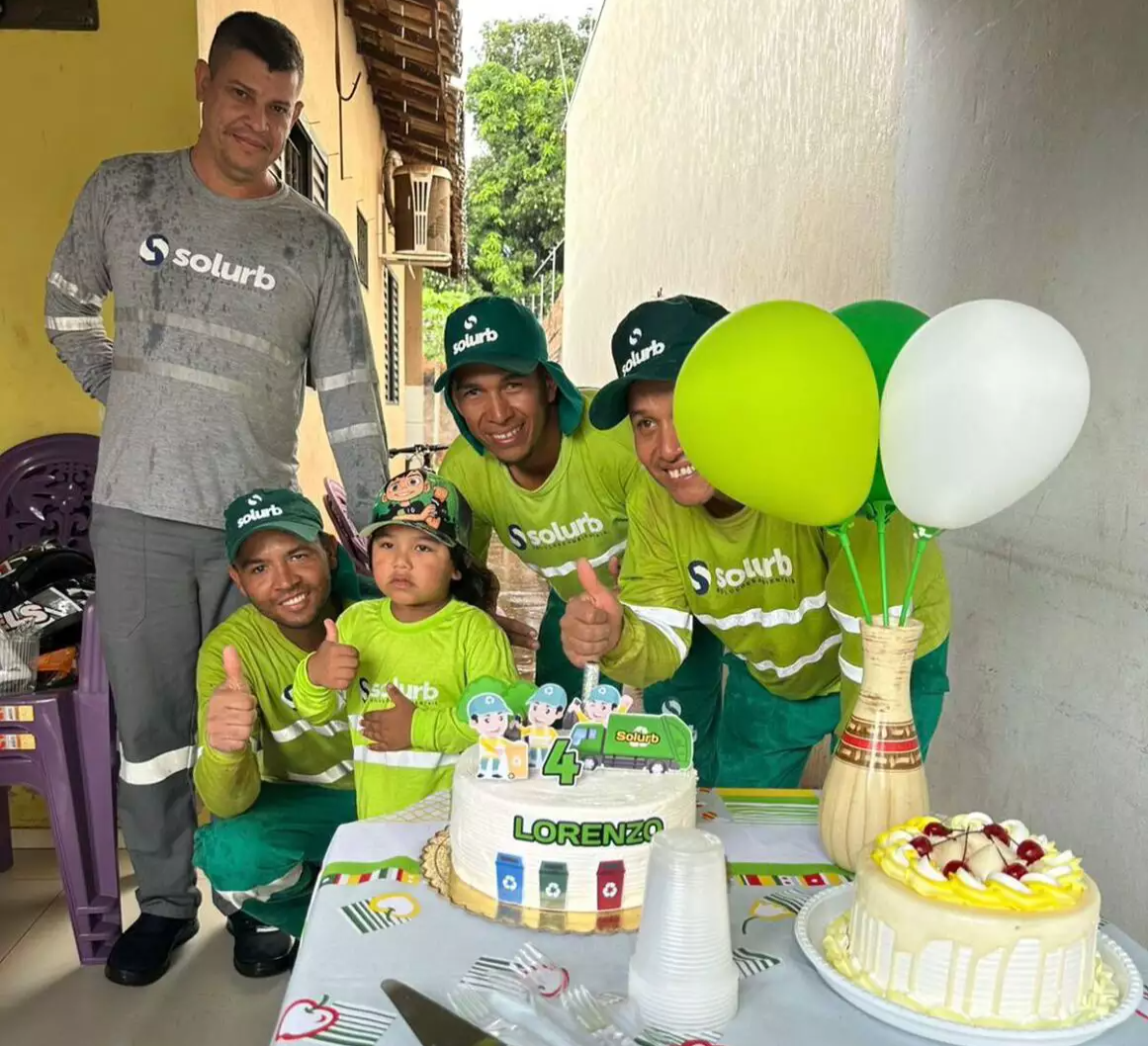 Lorenzo Gomes da Silva comemorou o aniversário de 4 anos de uma maneira diferente: convidou os garis que sempre passavam na rua para festejar com ele. A história começou com um medo de caminhões, mas terminou com uma verdadeira paixão do menino por eles. O tema da festa foi todo inspirado nos garis. O motivo do medo veio de uma vez em que a mãe levou o pequeno para ver a Carreta da Alegria, que passaria no bairro Jradim Anache, mas quem apareceu mesmo foi o caminhão do lixo.