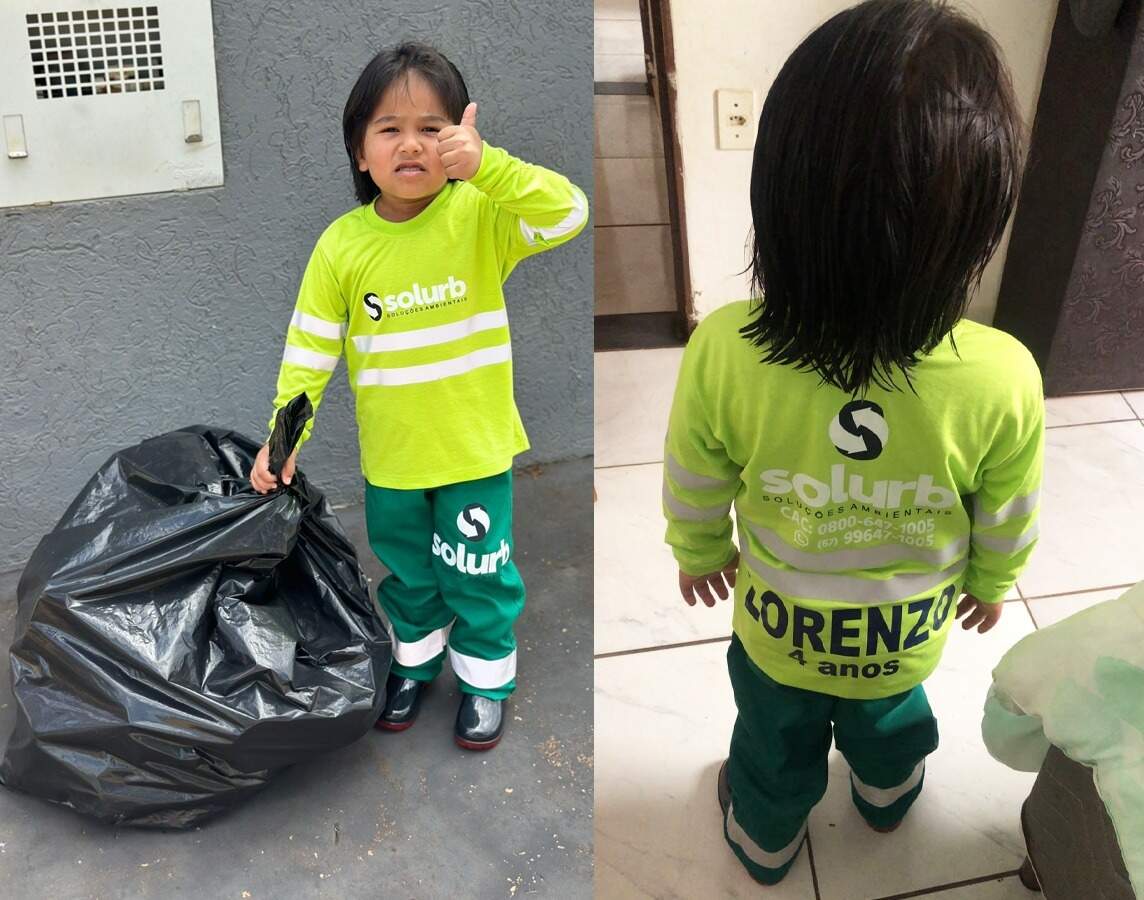 Para deixar tudo ainda mais profissional Maria mandou fazer a roupa de gari para o filho. Agora ela conta que Lorenzo quer ser motorista de caminhão quando crescer.