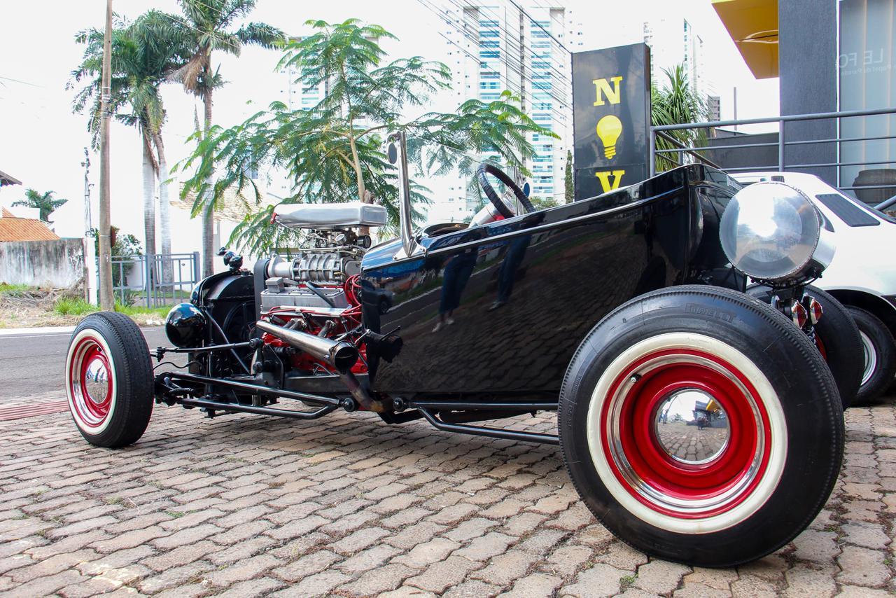 “O legal do Hot Rod é que ele é um carro que vem da cultura da Califórnia. Ele é uma chimbiquinha, aquelas antigas. A estrutura acaba sendo uma, o baú, mas foi adaptado com a cultura de lá de corrida no deserto, por isso que ele tem o motor V8 de respeito, com tudo o que tem direito, para ter potência para fazer a arrancada".