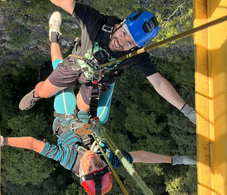 O passeio não foi leve. Além do rapel, eles fizeram toda a trilha da Boca da Onça, com cerca de 4,5 km e centenas de degraus. “Fizemos a trilha toda, de duas a três horas. Muito divertido. O guia é realmente incrível, eles são profissionais, instruídos. Eu viajo bastante e sei.”