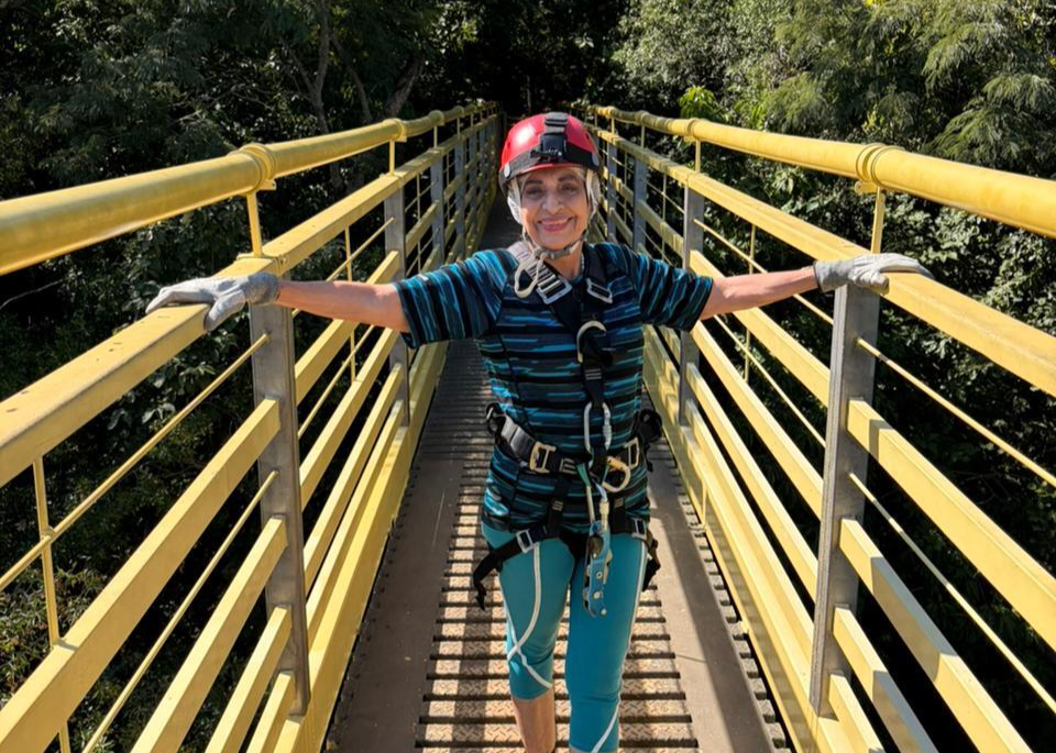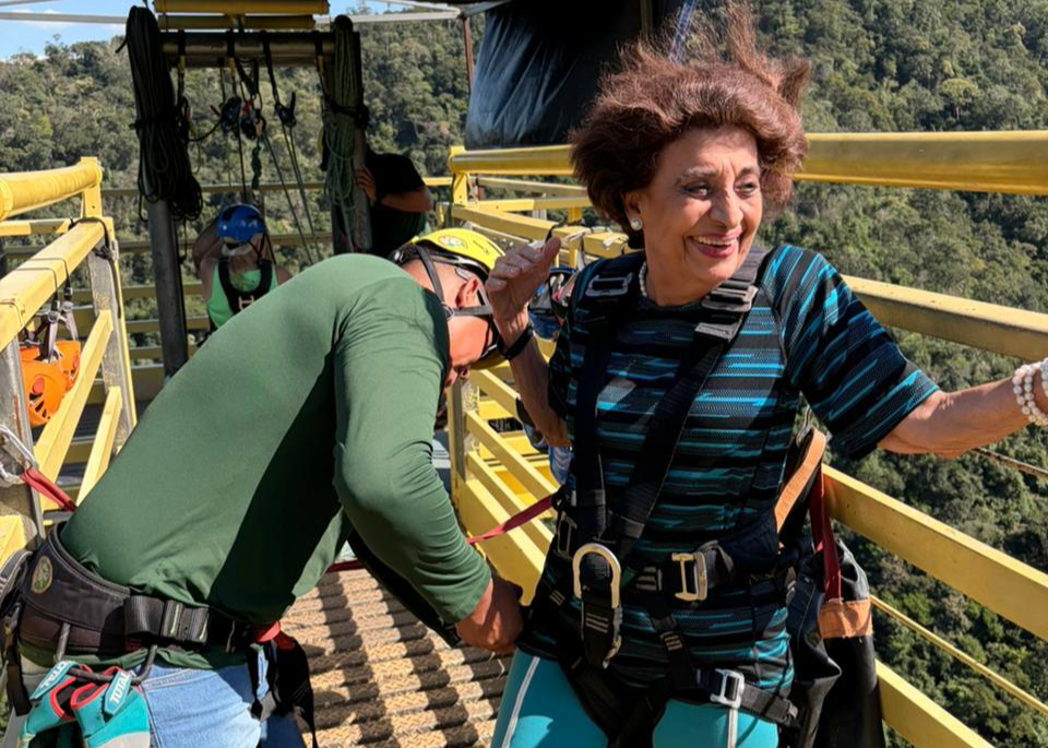 No momento da descida, ela decidiu ir no próprio ritmo. “A gente que decide a rapidez. Fui bem devagar. O Matheus me falando pra olhar a paisagem.” Lá embaixo, a recepção. “A hora que desci, todo mundo me esperando. Foi muito legal. Todo mundo vinha falar comigo.”