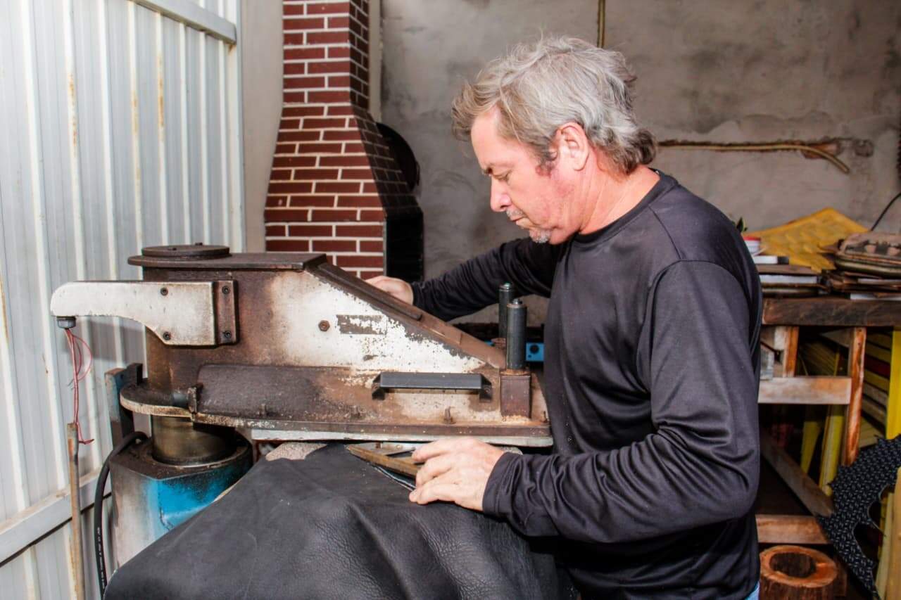 “As botinas que faço, eu também uso. Quem tira leite, anda no mangueiro e é pedreiro dura menos. Já para os motoqueiros, dura bem mais. Eu era motoqueiro quando peguei uma para mim, mas, de tanto descer da moto, ela vai se desgastando. No caso do pedreiro, vai comendo o couro, e, para quem mexe com leite, é o sal que corrói.”