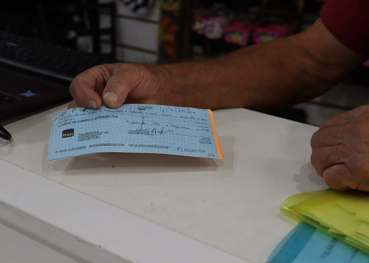 Mesmo depois de tanto tempo, ainda tem gente que insiste em pagar com cheque. O assunto é tão sério que, na loja do comerciante Ivo Rafael Silva, 68 anos, os talões não entram nem com reza brava.