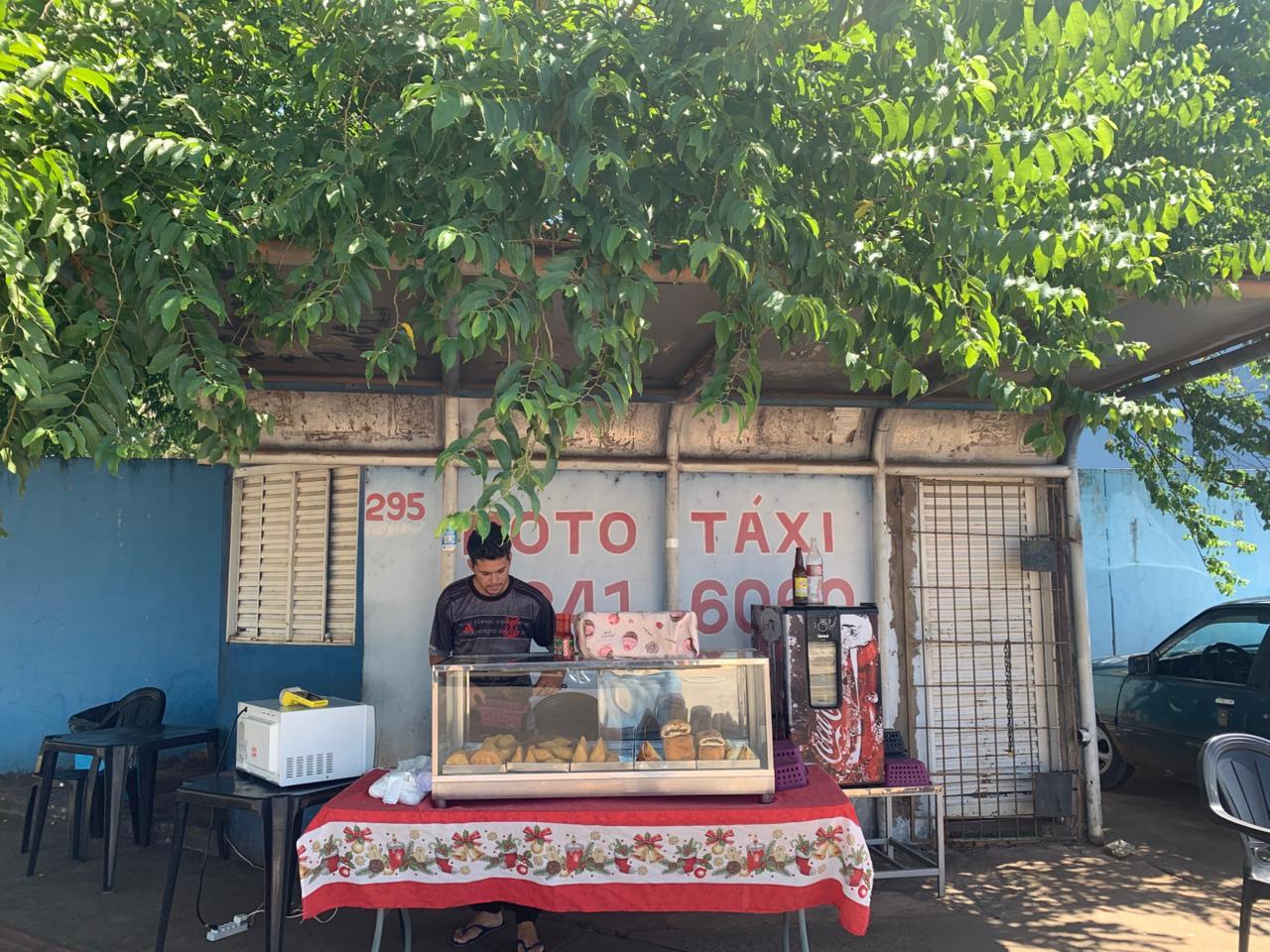 O pai sempre fez salgados para vender na rua, e o filho, desde os 12 anos, acompanhou a venda nos terminais de ônibus da cidade. Aos 15, já estava fixo no ponto de mototáxi, onde permanece até hoje. O ponto que ocupa é do tio, que é mototaxista e dono dali. Por isso, a “regalia” de conseguir guardar tudo o que precisa dentro do imóvel.