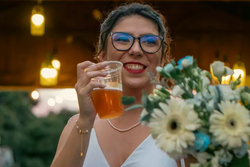 Penélope Herradon, de 27 anos, e Renan de Castro, de 33, trocaram a festa de casamento feita em salões pelo balcão do bar onde se conheceram. Foi em meio a copos de chope que eles se viram pela primeira vez e deram o primeiro beijo. O que começou em um aplicativo de relacionamento acabou em alianças trocadas e com a Baunilha, a cadela, como "dama de honra" da cerimônia que reuniu 40 convidados.