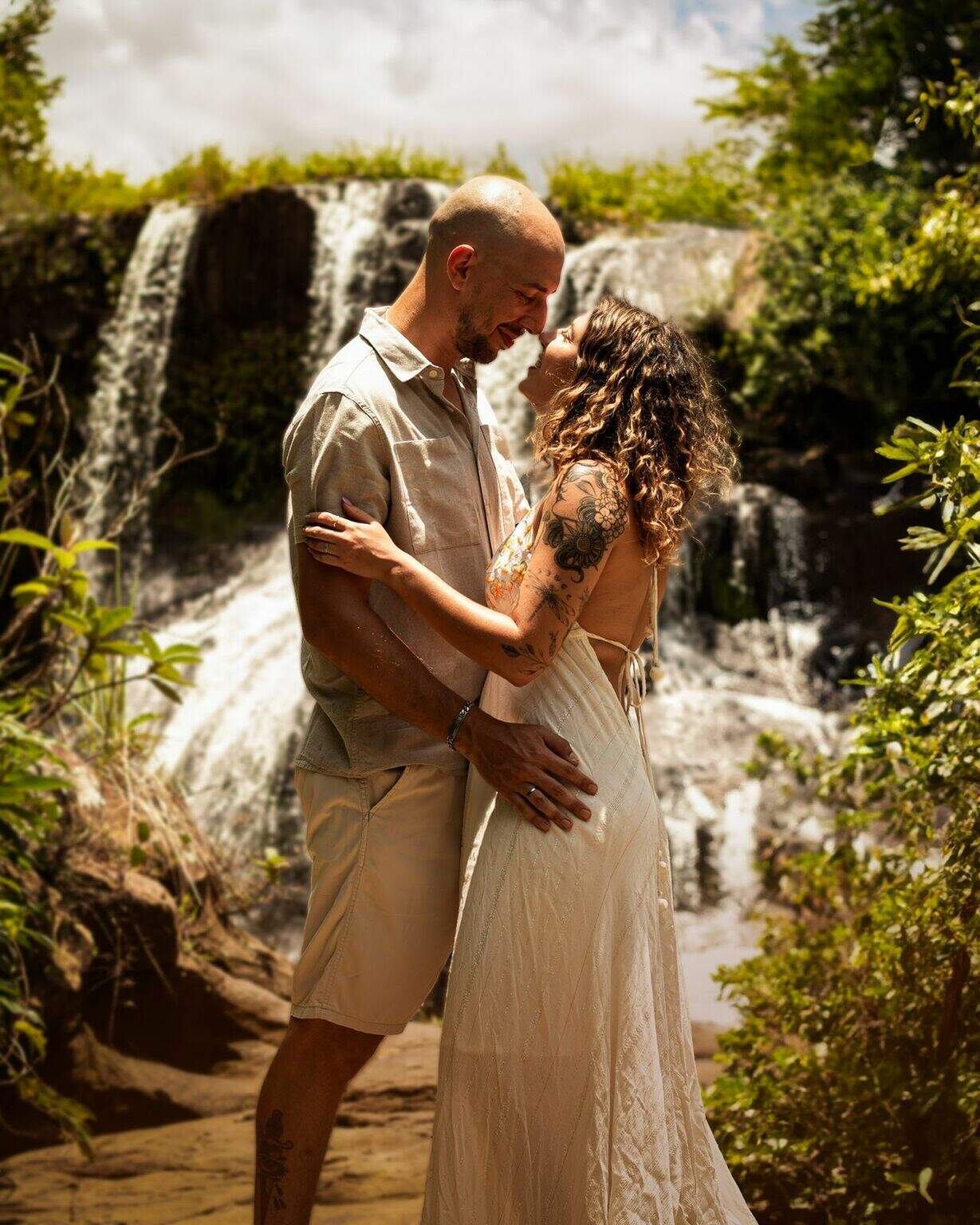 Casal celebra casamento em bar onde se conheceu após match em aplicativo de relacionamento. Penélope Herradon, 27 anos, e Renan de Castro, 33, optaram por uma cerimônia intimista com 40 convidados, tendo a cachorrinha Baunilha como daminha. O casal, que compartilha o amor por trilhas e natureza, ficou noivo após um ano e meio de namoro no Paraíso das Cachoeiras, em Rio Verde. Atualmente, desfrutam da lua de mel em Porto de Galinhas, Pernambuco, celebrando uma união que, segundo eles, trouxe a sensação de encontrar um lar um no outro.