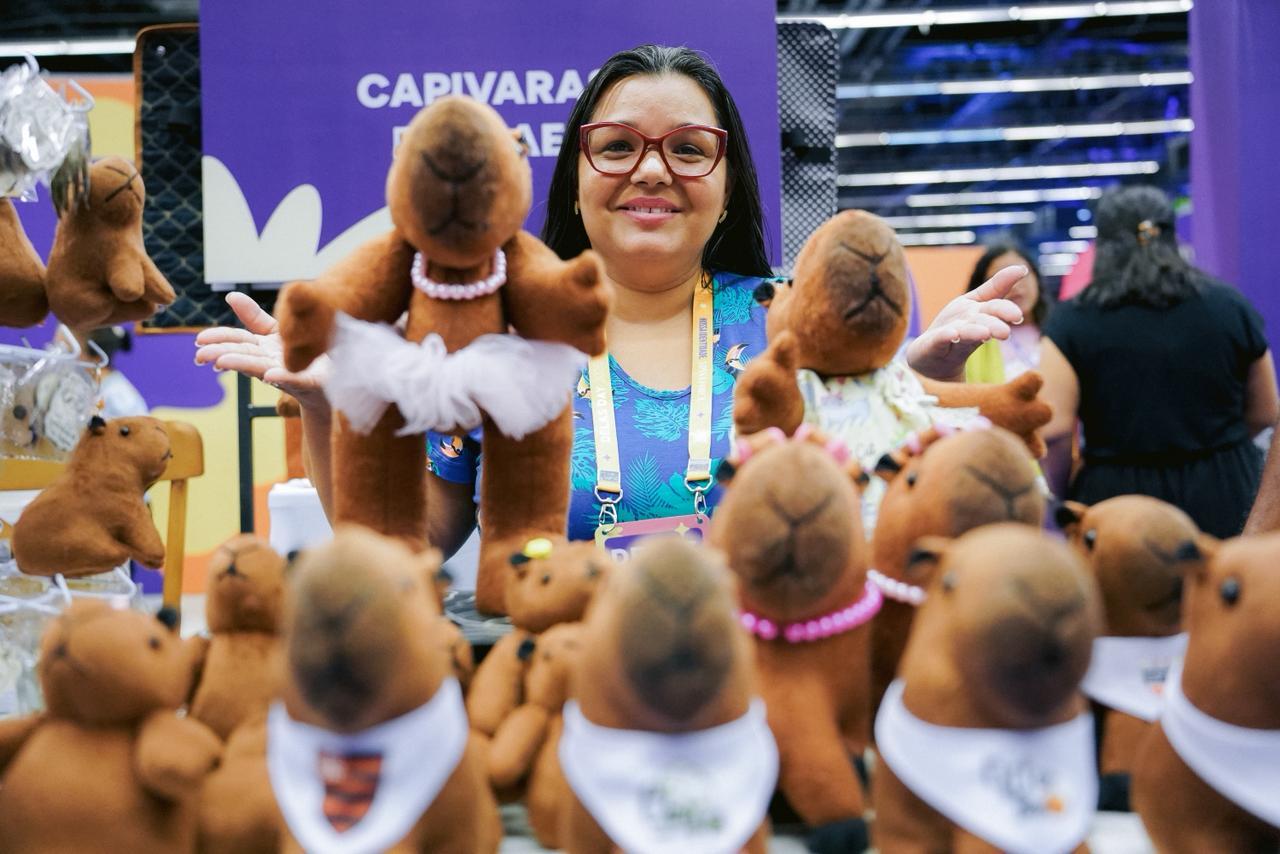 Bel é conhecida por criar “capivarinhas” personalizadas e, recentemente, lançou uma linha inclusiva. Entre os modelos estão a capivara cadeirante, com amputação, além de versões que representam autismo e câncer de mama.