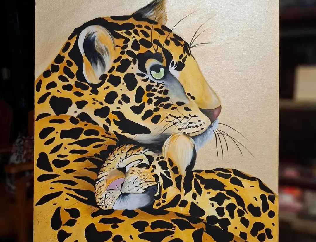 Foi no quintal de casa que a professora viu a rotina se transformar. Sem formação artística e com experiência apenas em artesanato, Mônica se desafiou a pintar uma onça-pintada. “Foi em uma tela grande, logo de cara. Queria ver se eu levava jeito”, conta.