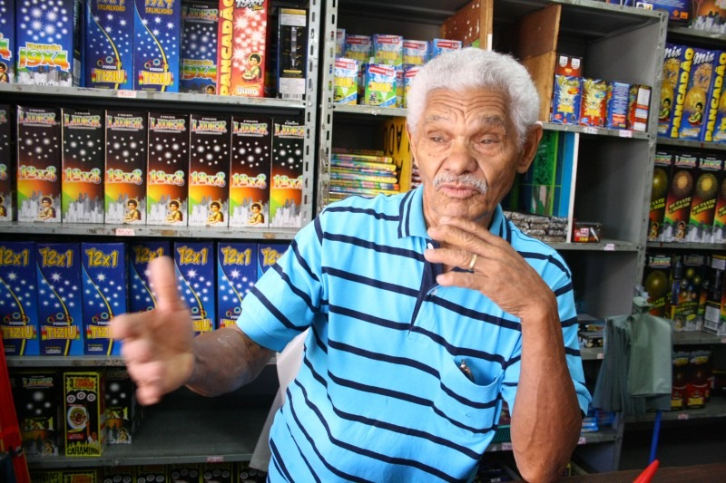 Os fogos vieram por acaso, quando vendedores ambulantes ofereceram algumas caixas para revenda em época de festa junina. “Ele começou devagarzinho, comprou umas bombinhas, umas estrelinhas. Aí percebeu que era um bom negócio e foi ampliando”, relata a filha.