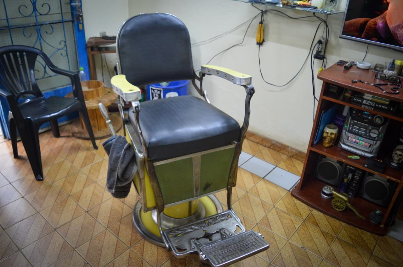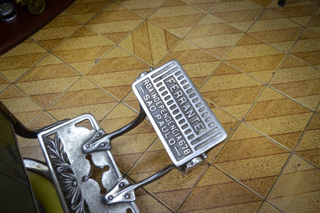 A cadeira veio de um antigo salão onde o pai trabalhou, o Salão Cristal. Na época, eram seis barbeiros e seis cadeiras. Conforme ensinava os filhos, o pai presenteava cada um com uma. “Além de ensinar a profissão, ele deu uma cadeira para cada filho. Está tudo na família até hoje”, conta José.