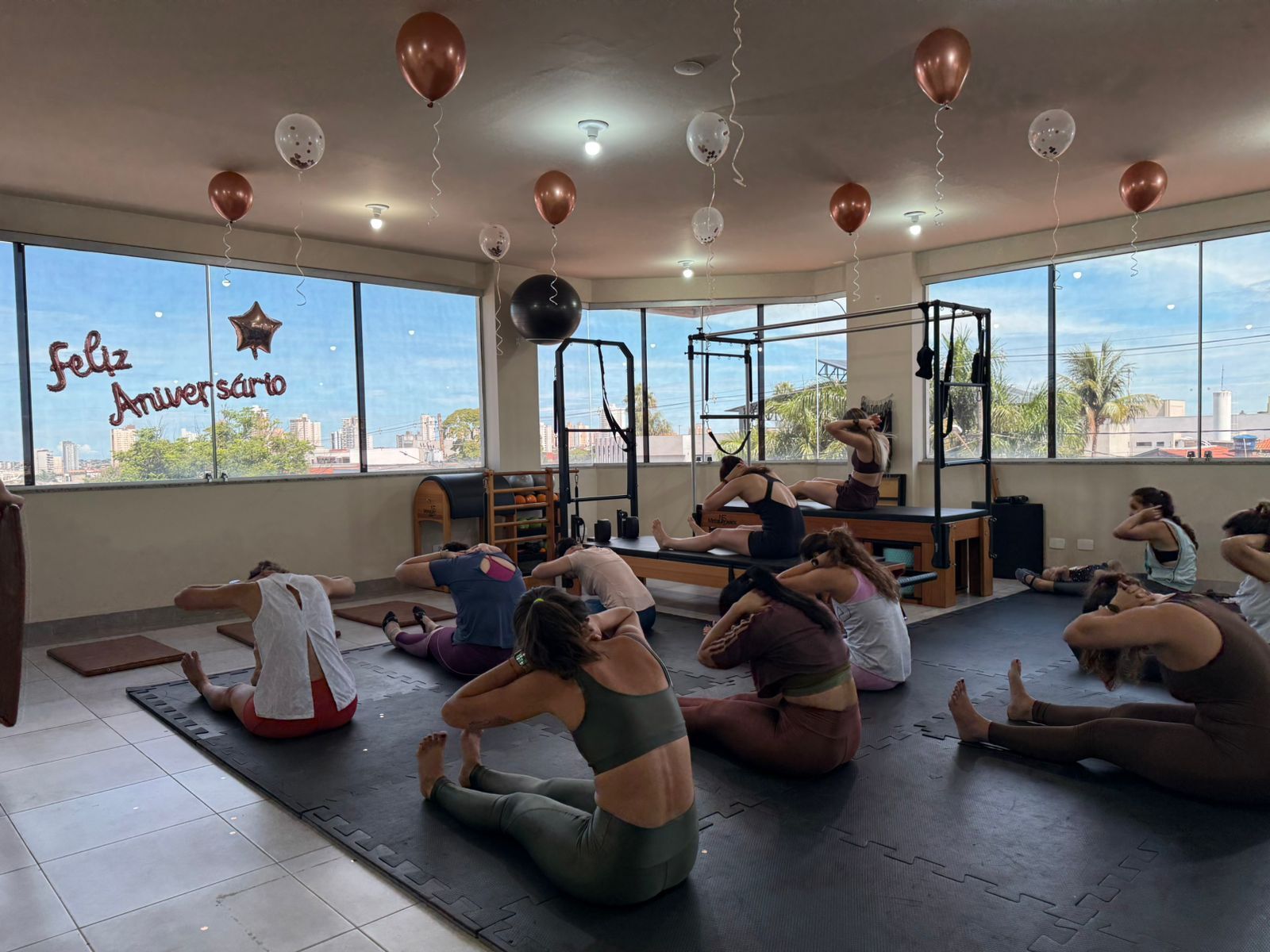 Mesmo com a correria típica do início do ano, a fisioterapeuta conseguiu reunir 12 amigas. “A gente vive sempre na correria do dia a dia. A ideia foi se juntar para fazer algo diferente e descontraído. Algumas já conheciam ou já tinham feito pilates, outras não, então foi muito divertido. Foi uma aula bem animada”, relembra.