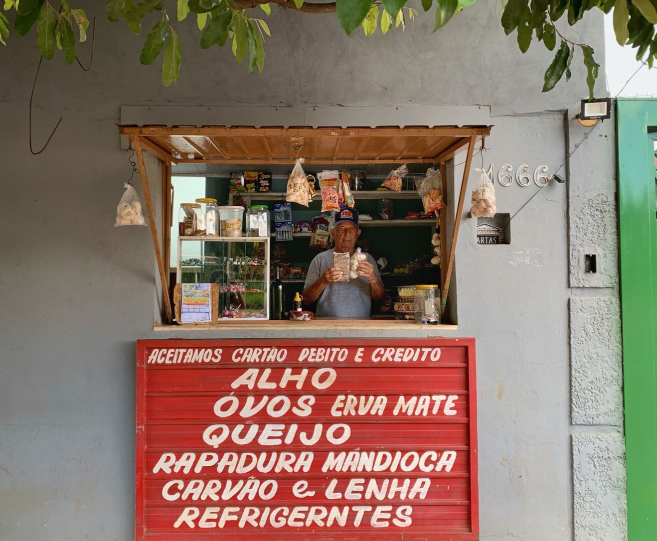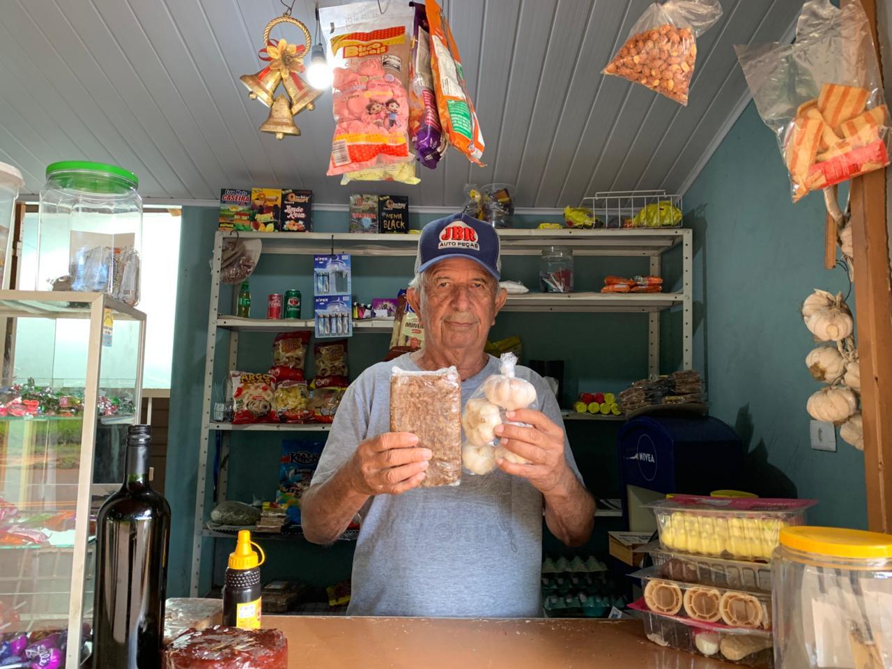 “Saí de lá com 30 anos, trabalhava em um armazém lá também. A venda tá no sangue. Casei lá, minha filha nasceu lá e agora tenho dois netos gêmeos. Cheguei aqui, comprei o terreno e construí. Me sinto feliz com a vida porque vim da fazenda, lá do jeito que a gente era não tinha nada”.