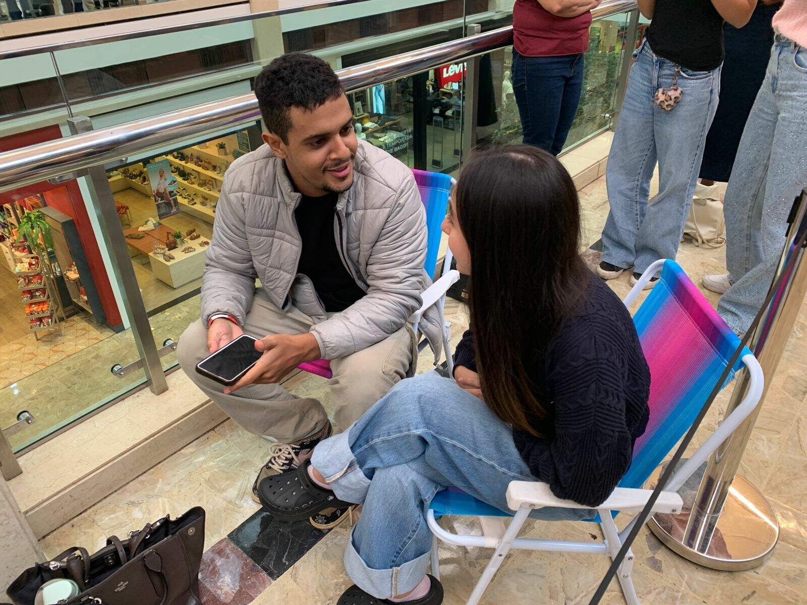 Para não cansar na fila teve gente que levou até cadeiras de praia. Foi o caso do casal Guilherme Maciel, 23 anos, e Caroline Safar, 21. Eles chegaram cedo para garantir os primeiros vouchers distribuídos pela loja.