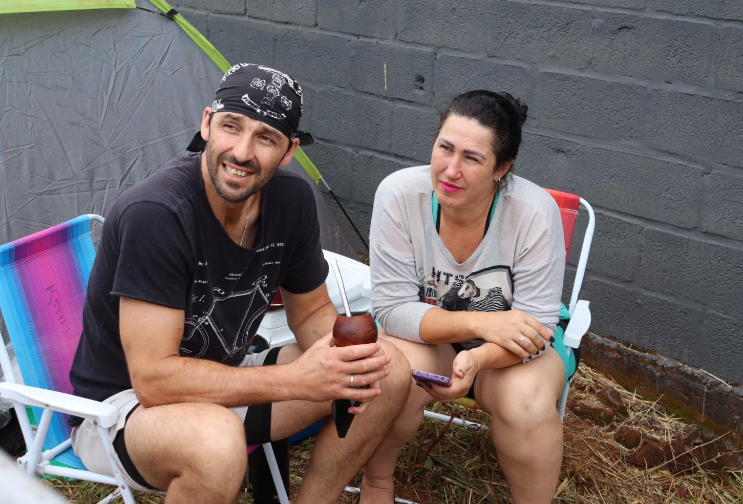 Entre os primeiros da fila estão Diego dos Santos e Kelly Bedin, que ocupam a terceira barraca. Ele é argentino e mora em Santa Catarina, e juntos encararam uma longa viagem para ver a banda.