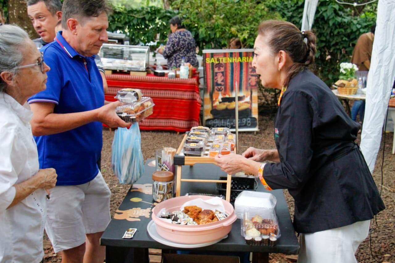 Entre as expositoras, Tereza Chaves, que mora há seis anos na região, levou receitas que misturam Pantanal, Cerrado e Bolívia. “Eu me especializei em comidas latinas. Quando me mudei pra cá, procurei ingredientes da região e também insumos que encontro na fronteira. Trouxe saltenha tradicional, a minha versão de saltenha de jaca e trouxinhas de shimeji com abobrinha flambada no saquê”, conta.