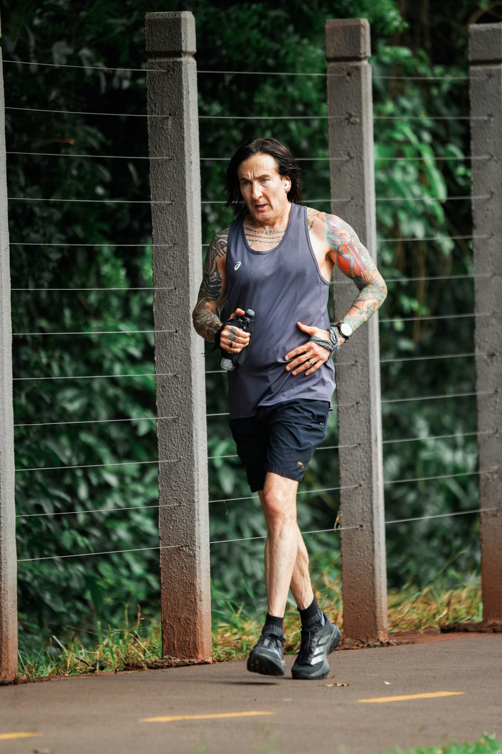 O guitarrista do Guns N’ Roses, Richard Fortus, aproveitou a manhã deste sábado (11) para uma corrida no Parque dos Poderes. O músico foi visto acompanhado de seu segurança e chamou a atenção de quem passava pelo local.