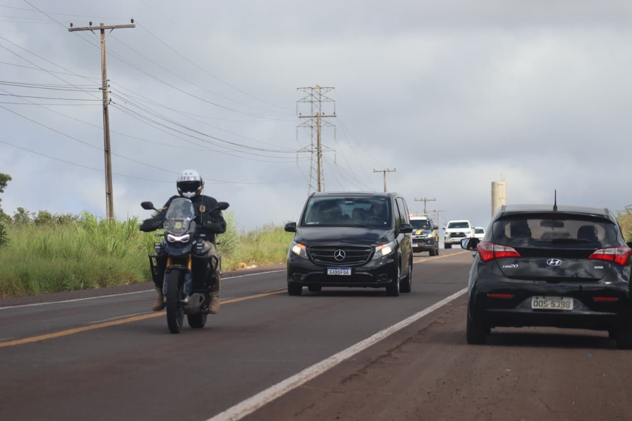 A saída foi marcada por um forte esquema de segurança com viaturas da PRF