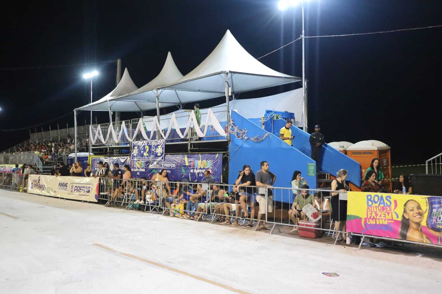 O segundo dia de desfiles das escolas de samba reúne, nesta terça-feira (17), as agremiações Catedráticos do Samba, Deixa Falar e Cinderela Tradição do José Abrão, na Praça do Papa, em Campo Grande. O público chegou mais cedo e ocupou a arquibancada com cadeiras de praia e roupas confortáveis. A noite encerra a etapa de apresentações do Carnaval oficial da Capital.