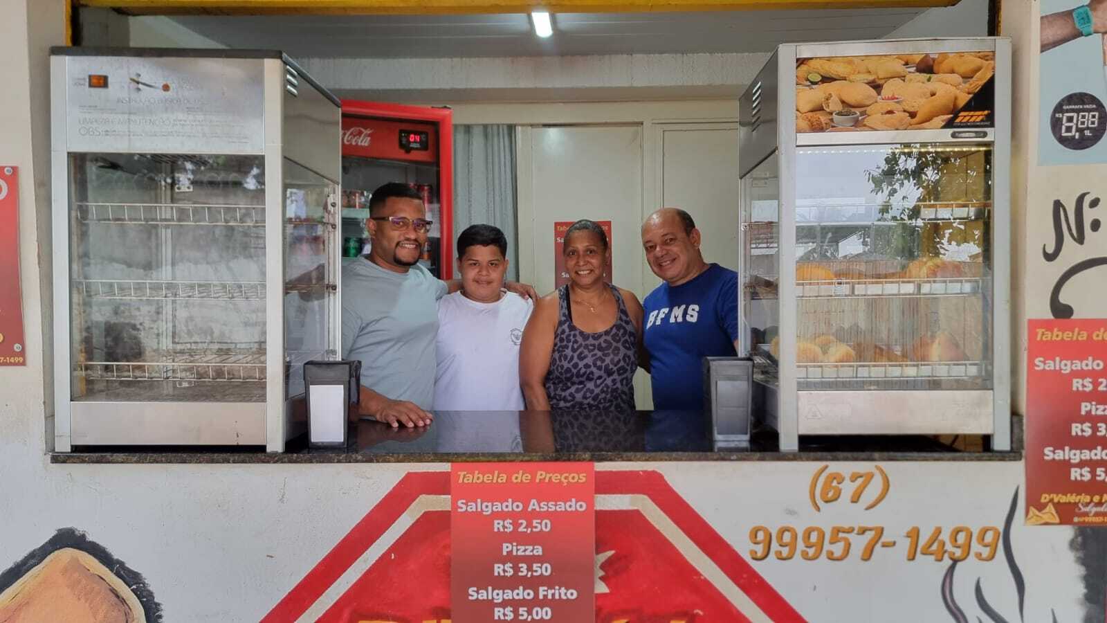 Após 16 anos trabalhando em cantinas escolares, o casal Lourdes Valéria e Paulo Machado decidiu abrir a própria salgaderia na calçada de casa, no Bairro Jockey Clube, em Campo Grande. O que começou com uma caixa de isopor e poucos salgados transformou-se em um estabelecimento com salão próprio. O negócio familiar, que completa uma década, mantém a tradição das cantinas escolares com salgados frescos preparados diariamente. O casal inicia o expediente às 5h30 e atende uma clientela fiel, incluindo ex-alunos que agora levam seus próprios filhos ao estabelecimento.