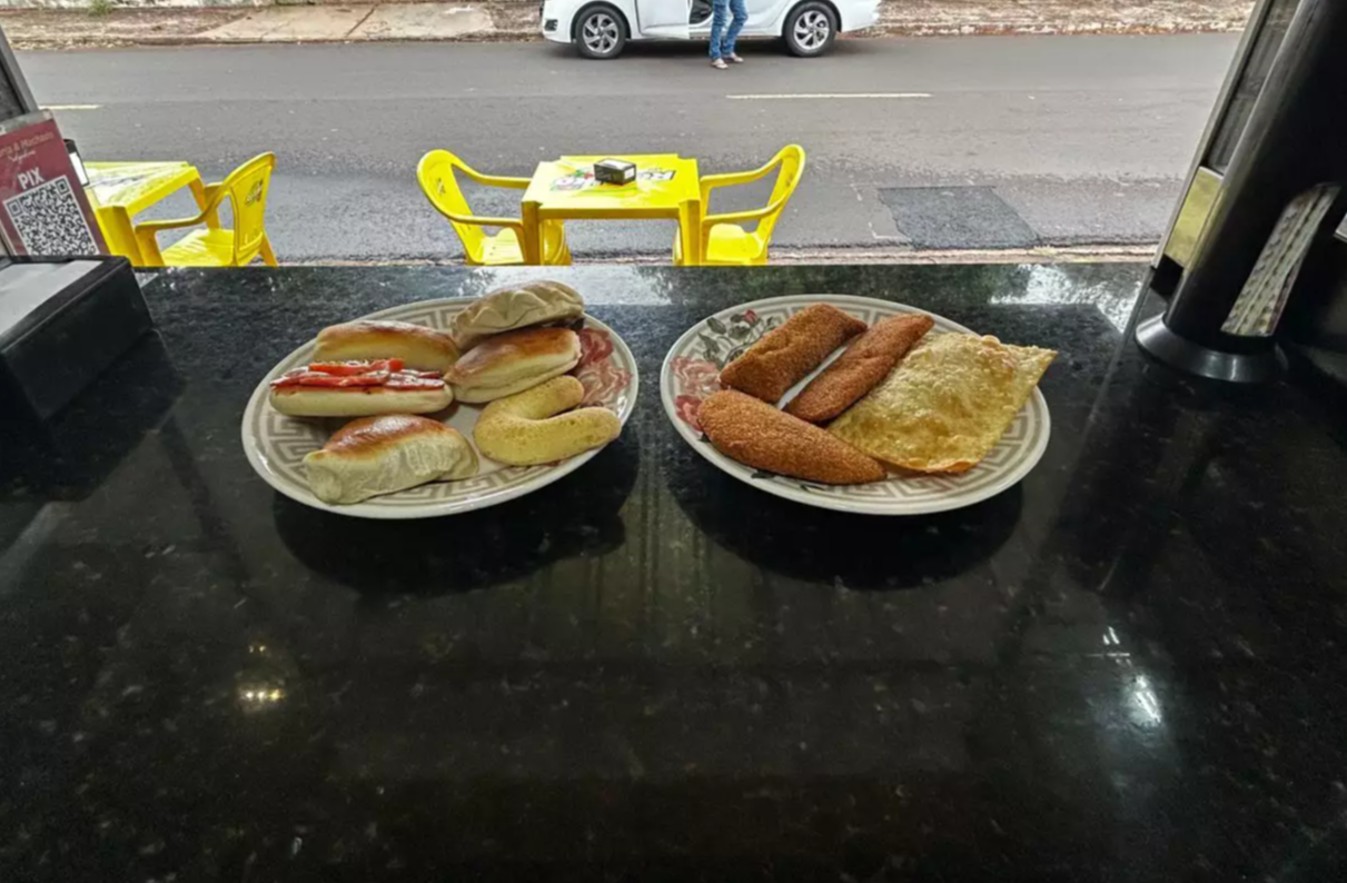 O cardápio é variado e segue a tradição das cantinas. Tem esfirra de carne, hamburguinho com cheddar, pizza, chipa, enroladinho de presunto e queijo, e frango com requeijão. Tudo é feito de madrugada, com massa fresca, nada de congelado. “Acordamos às quatro da manhã. Fazemos tudo no dia”, explica Paulo.
