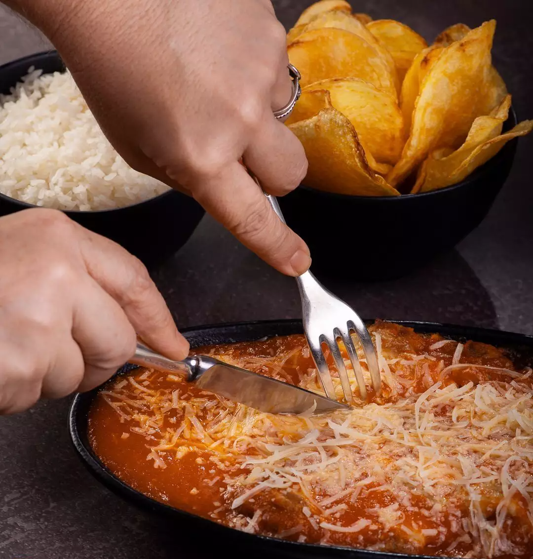 No iFood, há diversas opções: de casas especializadas a restaurantes tradicionais. O Seu Parmê, por exemplo, trabalha com cortes angus empanados e servidos com molho rústico de tomate e manjericão. A porção individual serve uma pessoa; a dupla atende duas; e a família chega a quatro, com preços entre R$ 84,90 e R$ 148,90.