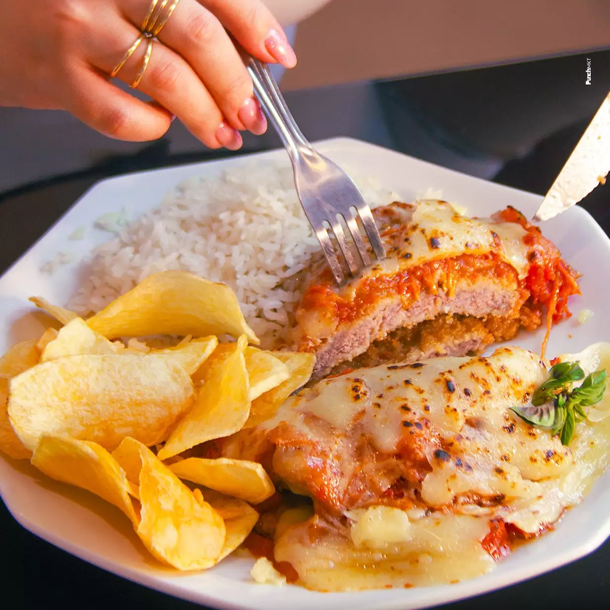 Varandá Filet & Chips é especializado em parmegiana e oferece acompanhamentos como batata chips e arroz (Foto: Redes sociais).